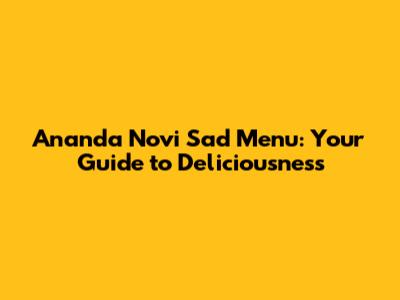 Ananda Novi Sad Menu: Your Guide To Deliciousness
