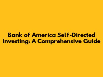 Bank Of America Self-Directed Investing: A Comprehensive Guide