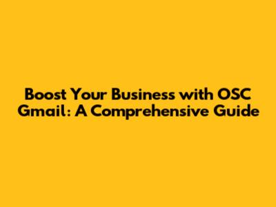 Boost Your Business With OSC Gmail: A Comprehensive Guide