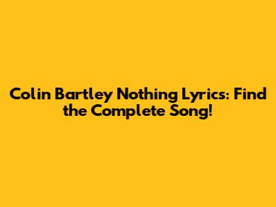 Colin Bartley Nothing Lyrics: Find The Complete Song!