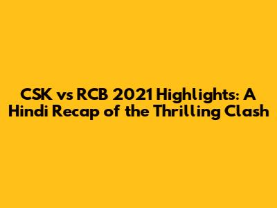 Hey cricket fans! Are you ready to relive the epic encounter between Chennai Super Kings (CSK) and Royal Challengers Bangalore (RCB) from the 2021 season? If you're searching for "CSK vs RCB 2021 highlights in Hindi," then you've landed in the right place, my friends. This article is your one-stop destination to delve back into that unforgettable match, filled with stunning shots, nail-biting moments, and the sheer brilliance of cricketing legends. We'll break down the key moments, talk about the standout performances, and why this match remains etched in the memories of every cricket enthusiast. Let's dive deep into the heart of the action and revisit the highlights of the CSK vs RCB 2021 clash, all narrated in Hindi! Get ready for a thrilling journey through one of the most exciting matches of the season.
