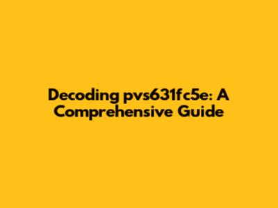 Decoding Pvs631fc5e: A Comprehensive Guide