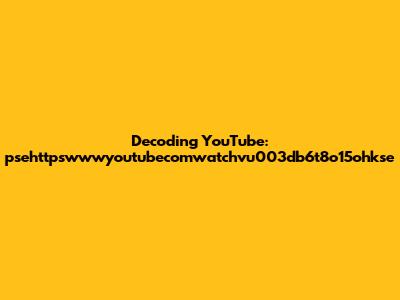 Decoding YouTube: Psehttpswwwyoutubecomwatchvu003db6t8o15ohkse