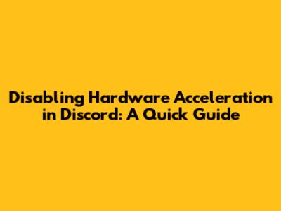 Disable Hardware Acceleration In Discord: A Quick Guide