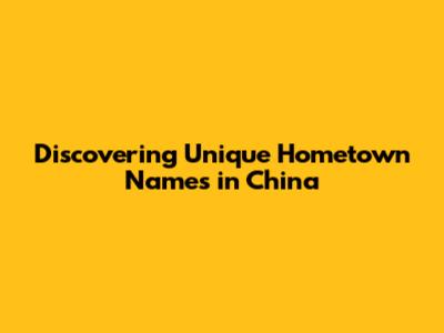 Discovering Unique Hometown Names In China