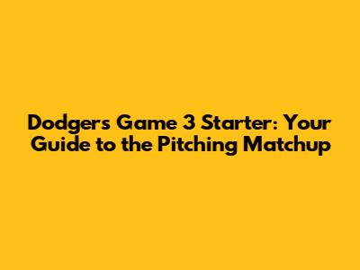 Dodgers Game 3 Starter: Your Guide To The Pitching Matchup