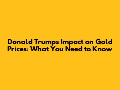 Donald Trump's Impact On Gold Prices: What You Need To Know