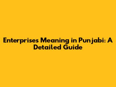 Enterprises Meaning In Punjabi: A Detailed Guide