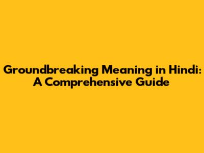 Groundbreaking Meaning In Hindi: A Comprehensive Guide