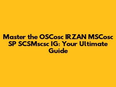 Guide To OSCosc IRZAN MSCosc SP SCSMscsc IG