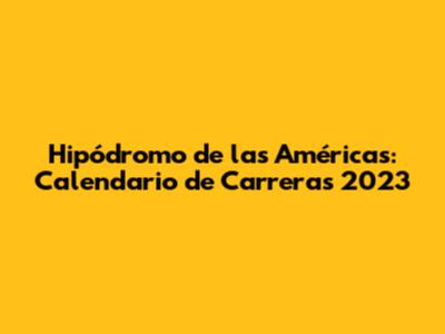 Hipódromo De Las Américas: Calendario De Carreras 2023