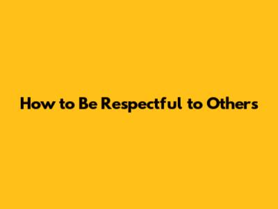 How To Be Respectful To Others