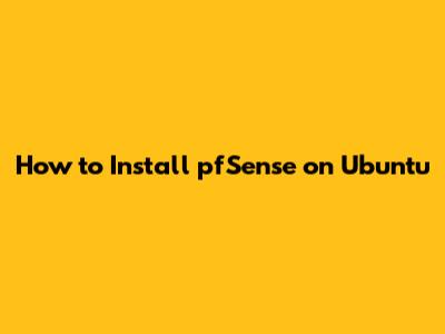 How To Install PfSense On Ubuntu