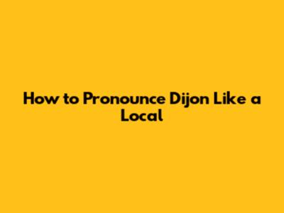 How To Pronounce Dijon Like A Local
