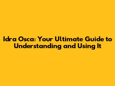 Idra Osca: Your Ultimate Guide To Understanding And Using It