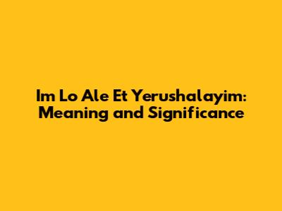 Im Lo Ale Et Yerushalayim: Meaning And Significance