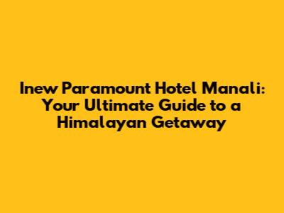Inew Paramount Hotel Manali: Your Ultimate Guide