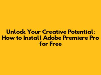 Unlock Your Creative Potential: How to Install Adobe Premiere Pro for Free