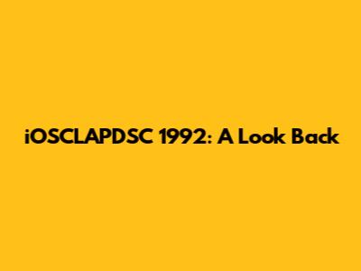 IOSCLAPDSC 1992: A Look Back