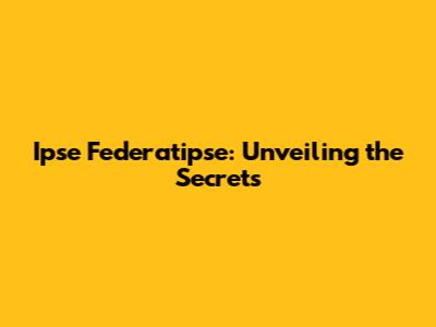 Ipse Federatipse: A Comprehensive Guide