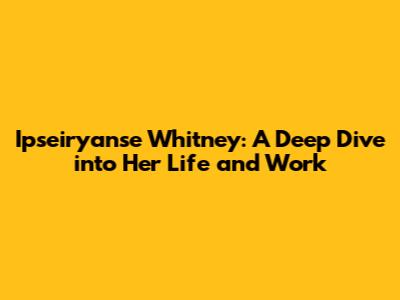 Ipseiryanse Whitney: A Deep Dive Into Her Life And Work