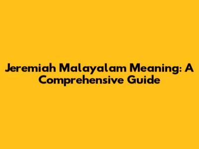 Jeremiah Meaning In Malayalam: A Comprehensive Guide