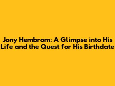 Jony Hembrom: Unveiling His Birthdate And Life's Journey