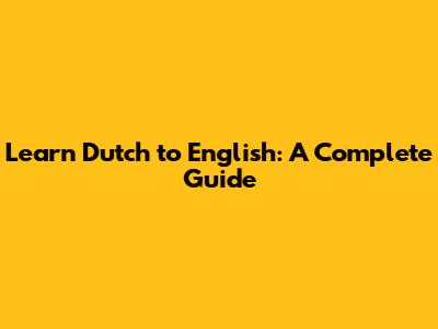 Learn Dutch To English: A Complete Guide