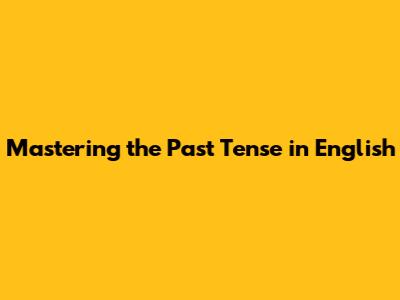 Mastering The Past Tense In English