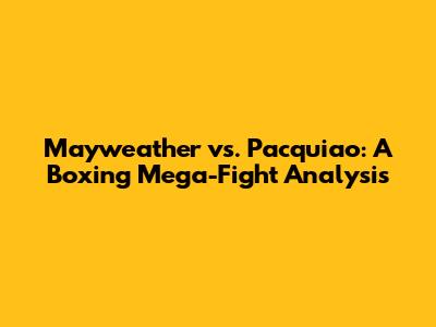 Mayweather Vs. Pacquiao: A Boxing Mega-Fight Analysis