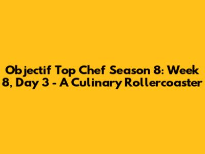Hey foodies! Let's dive right into the heart of Objectif Top Chef Season 8, Week 8, Day 3. This season has been a whirlwind of culinary challenges, pressure cooker moments, and some truly impressive dishes. For those of you just tuning in, this show is all about aspiring chefs battling it out to impress the judges and, ultimately, Chef Philippe Etchebest. It's a high-stakes competition, and the intensity is always turned up to eleven. Each episode brings new tests, pushing the contestants to their limits, both creatively and technically. The goal? To prove they have what it takes to become a professional chef and potentially earn a spot in a top-tier restaurant. The competition is fierce, the clock is ticking, and the kitchen is hotter than ever! The judges are on the lookout for innovation, precision, and, of course, deliciousness. Every single dish is a gamble, a test of skill, and a reflection of the chef's passion. Season 8 has been particularly exciting, with a diverse group of contestants bringing their unique styles and techniques to the table. From classic French cuisine to modern twists, the variety is astounding. The pressure is on, and the heat is definitely turned up. Get ready for a recap of all the drama, the triumphs, and, let's be honest, the occasional kitchen mishap that made Objectif Top Chef Season 8, Week 8, Day 3 such a thrilling episode. So, grab your snacks, and let's get cooking with this exciting episode of Objectif Top Chef.