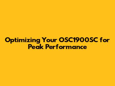 Optimizing Your OSC1900SC For Peak Performance