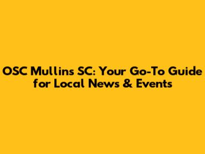 OSC Mullins SC: Your Go-To Guide For Local News & Events