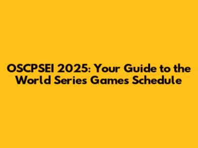 OSCPSEI 2025: Your Guide To The World Series Games Schedule