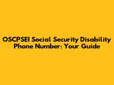 OSCPSEI Social Security Disability Phone Number