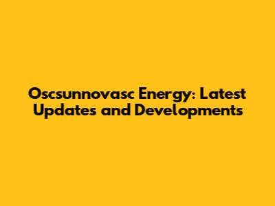Oscsunnovasc Energy: Latest Updates And Developments