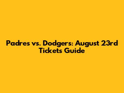 Padres Vs. Dodgers: August 23rd Tickets Guide