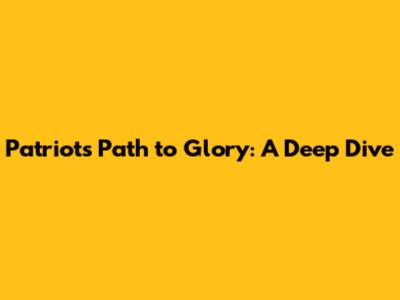 Patriots' Path To Glory: A Deep Dive