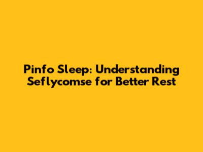 Pinfo Sleep: Understanding Seflycomse For Better Rest
