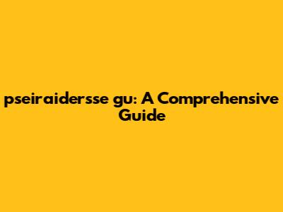 Pseiraidersse Gu: A Comprehensive Guide