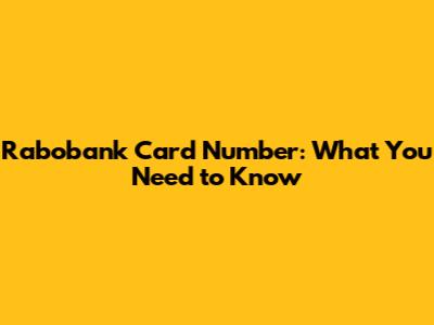 Rabobank Card Number: What You Need To Know