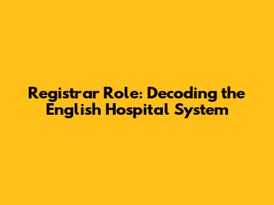 Registrar Role: Decoding The English Hospital System