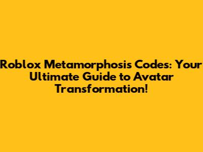 Roblox Metamorphosis Codes: Transform Your Avatar!
