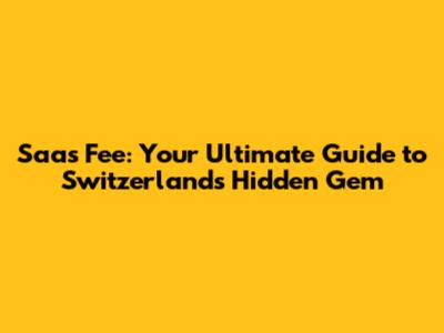Saas Fee: Your Ultimate Guide To Switzerland's Hidden Gem