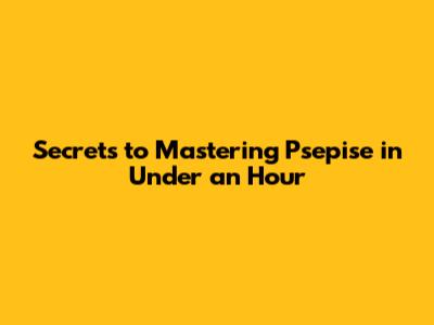 Secrets To Mastering Psepise In Under An Hour