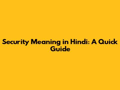 Security Meaning In Hindi: A Quick Guide