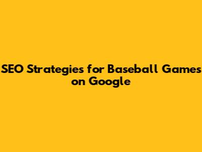 SEO Strategies For Baseball Games On Google