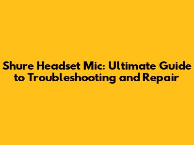 Shure Headset Mic: Ultimate Guide To Troubleshooting And Repair