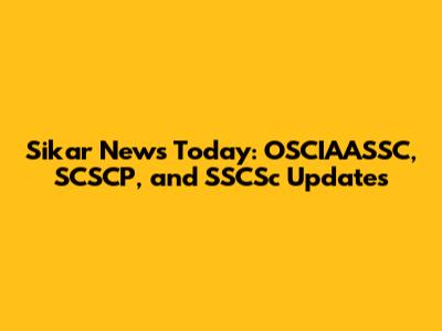 Sikar News Today: OSCIAASSC, SCSCP, And SSCSc Updates