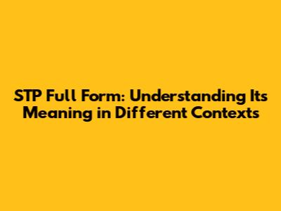 STP Full Form: Understanding Its Meaning In Different Contexts